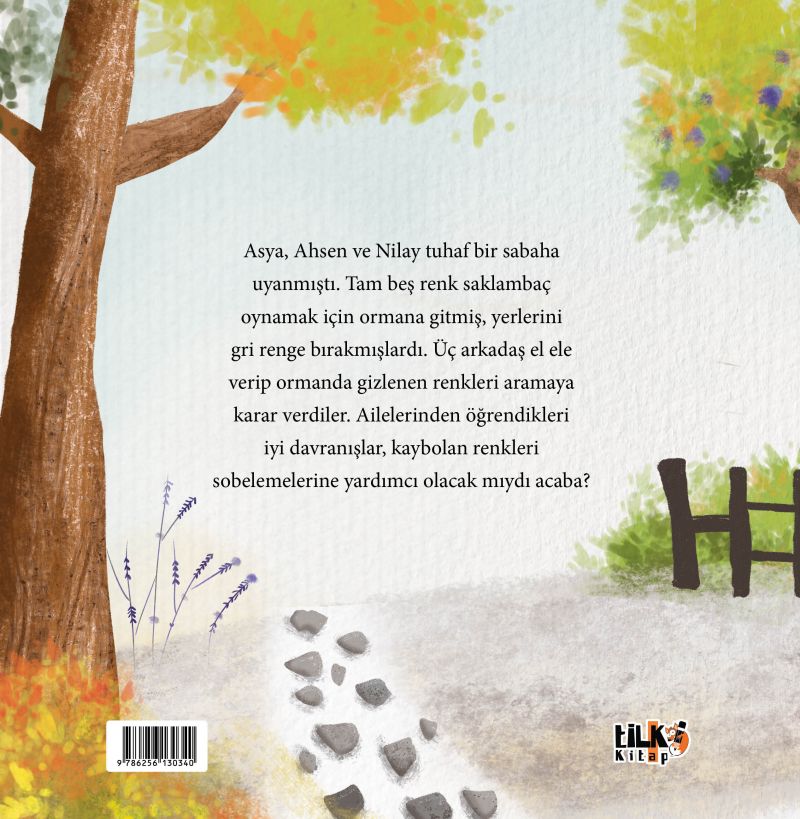 Asya, Ahsen ve Nilay tuhaf bir sabaha uyanmıştı. Tam beş renk saklambaç oynamak için ormana gitmiş, yerlerini gri renge bırakmışlardı. Üç arkadaş el ele verip ormanda gizlenen renkleri aramaya karar verdiler. Ailelerinden öğrendikleri iyi davranışlar, kaybolan renkleri sobelemelerine yardımcı olacak mıydı acaba?