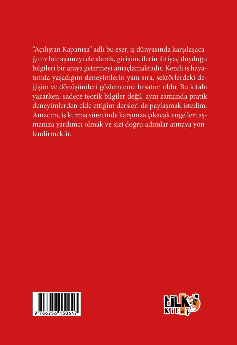 "Açılıştan Kapanışa" adlı bu eser, iş dünyasında karşılaşacağınız her aşamayı ele alarak, girişimcilerin ihtiyaç duyduğu bilgileri bir araya getirmeyi amaçlamaktadır. Kendi iş hayatımda yaşadığım deneyimlerin yanı sıra, sektörlerdeki değişim ve dönüşümleri gözlemleme fırsatım oldu. Bu kitabı yazarken, sadece teorik bilgiler değil, aynı zamanda pratik deneyimlerden elde ettiğim dersleri de paylaşmak istedim. Amacım, iş kurma sürecinde karşınıza çıkacak engelleri aşmanıza yardımcı olmak ve sizi doğru adımlar atmaya yönlendirmektir.