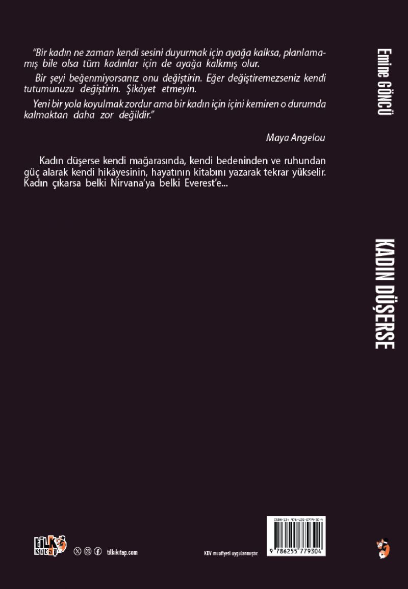 Kadın düşerse kendi mağarasında, kendi bedeninden ve ruhundan güç alarak kendi hikâyesinin, hayatının kitabını yazarak tekrar yükselir. Kadın çıkarsa belki Nirvana’ya belki Everest’e...