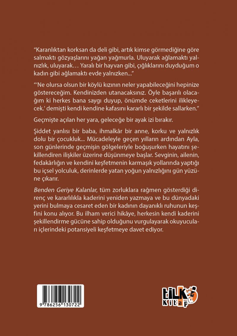 Benden Geriye Kalanlar, tüm zorluklara rağmen gösterdiği direnç ve kararlılıkla kaderini yeniden yazmaya ve bu dünyadaki yerini bulmaya cesaret eden bir kadının dayanıklı ruhunun keşfini konu alıyor. Bu ilham verici hikâye, herkesin kendi kaderini şekillendirme gücüne sahip olduğunu vurgulayarak okuyucuları içlerindeki potansiyeli keşfetmeye davet ediyor.