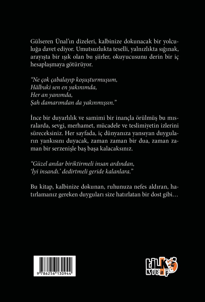 Gülseren Ünal’ın dizeleri, kalbinize dokunacak bir yolculuğa davet ediyor. Umutsuzlukta teselli, yalnızlıkta sığınak, arayışta bir ışık olan bu şiirler, okuyucusunu derin bir iç hesaplaşmaya götürüyor.