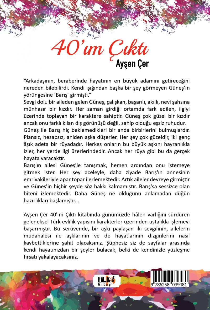 Ayşen Çer 40'ım Çıktı kitabında günümüzde hâlen varlığını sürdüren geleneksel Türk evlilik yapısını karakterler üzerinden ustalıkla işlemeyi başarmıştır. Bu serüvende, bir aşkı paylaşan iki sevgilinin, ailelerin müdahalesi ile aşklarının ve de hayatlarının dizginlerini nasıl kaybettiklerine şahit olacaksınız. Şüphesiz siz de sayfalar arasında kendi hayatınızdan bir şeyler bulacak, belki de kendinizle yüzleşme fırsatı yakalayacaksınız.
