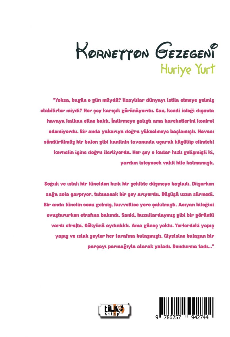 "Yoksa, bugün o gün müydü? Uzaylılar dünyayı istila etmeye gelmiş olabilirler miydi? Her şey karışık görünüyordu. Can, kendi isteği dışında havaya kalkan eline baktı. İndirmeye çalıştı ama hareketlerini kontrol edemiyordu. Bir anda yukarıya doğru yükselmeye başlamıştı. Havası söndürülmüş bir balon gibi kantinin tavanında uçarak küçülüp elindeki kornetin içine doğru ilerliyordu. Her şey o kadar hızlı gelişmişti ki, yardım isteyecek vakti bile kalmamıştı.