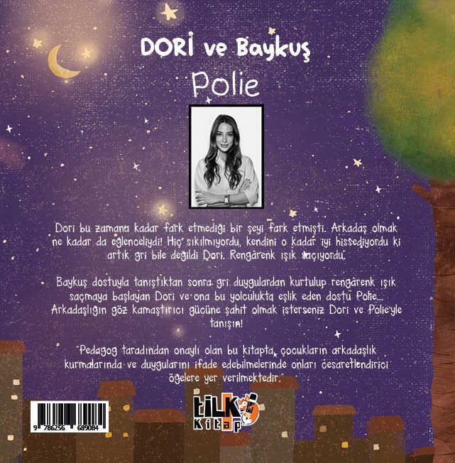 Dori bu zamana kadar fark etmediği bir şeyi fark etmişti. Arkadaş olmak ne kadar eğlenceli bir şeydi! Hiç sıkılmıyordu, kendini o kadar iyi hissediyordu ki artık gri bile değildi Dori. Rengârenk ışık saçıyordu. Baykuş dostuyla tanıştıktan sonra gri duygulardan kurtulup rengârenk ışık saçmaya başlayan Dori ve ona bu yolculukta eşlik eden dostu Polie… Arkadaşlığın göz kamaştırıcı gücüne şahit olmak isterseniz Dori ve Polie'yle tanışın! "Pedagog onaylı olan bu hikâyede, çocukların arkadaşlık kurmalarında ve duygularını ifade edebilmelerinde onları cesaretlendirici öğelere yer verilmektedir."