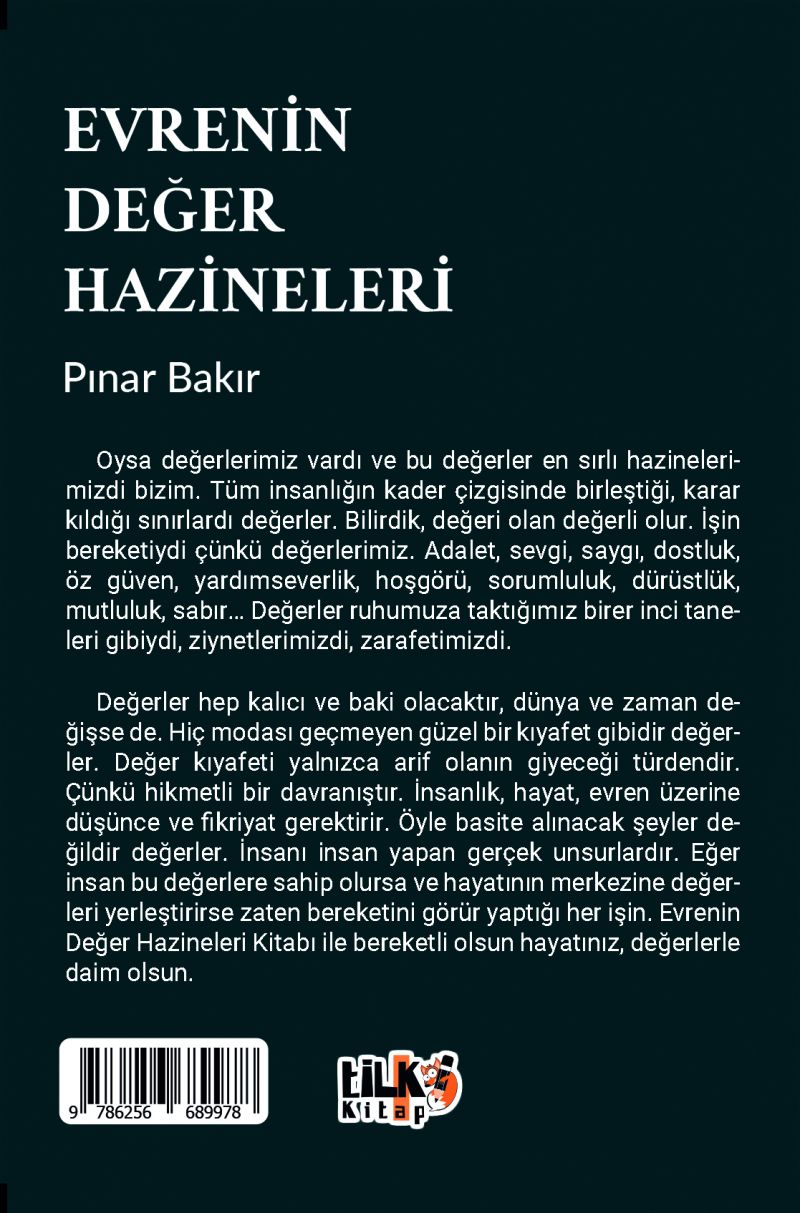 Oysa değerlerimiz vardı ve bu değerler en sırlı hazinelerimizdi bizim. Tüm insanlığın kader çizgisinde birleştiği, karar kıldığı sınırlardı değerler. Bilirdik, değeri olan değerli olur. İşin bereketiydi çünkü değerlerimiz. Adalet, sevgi, saygı, dostluk, öz güven, yardımseverlik, hoşgörü, sorumluluk, dürüstlük, mutluluk, sabır… Değerler ruhumuza taktığımız birer inci taneleri gibiydi, ziynetlerimizdi, zarafetimizdi. Değerler hep kalıcı ve baki olacaktır, dünya ve zaman değişse de. Hiç modası geçmeyen güzel bir kıyafet gibidir değerler. Değer kıyafeti yalnızca arif olanın giyeceği türdendir. Çünkü hikmetli bir davranıştır. İnsanlık, hayat, evren üzerine düşünce ve fikriyat gerektirir. Öyle basite alınacak şeyler değildir değerler. İnsanı insan yapan gerçek unsurlardır. Eğer insan bu değerlere sahip olursa ve hayatının merkezine değerleri yerleştirirse zaten bereketini görür yaptığı her işin. Evrenin Değer Hazineleri Kitabı ile bereketli olsun hayatınız, değerlerle daim olsun.