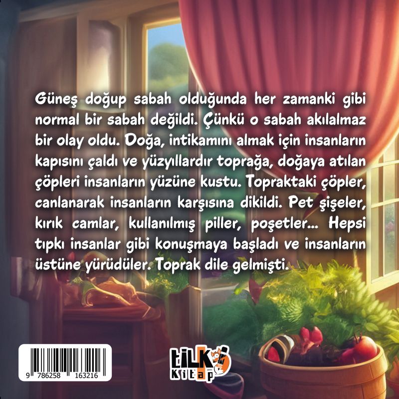 Güneş doğup sabah olduğunda her zamanki gibi normal bir sabah değildi .Çünkü o sabah akılalmaz bir olay oldu .Doğa , intikamını almak için insanların kapısını çaldı ve yüzyıllardır toprağa doğaya atılan çöplerin insanların yüzüne kustu. Topraktaki çöpler , canlanarak insanların karşısına dikildi .Pet şişeler , Kırık camlar , kullanılmış piller , poşetler...Hepsi tıpkı insanlar gibi konuşmaya başladı ve insanların üstüne yürüdüler .Toprak dile gelmişti.
