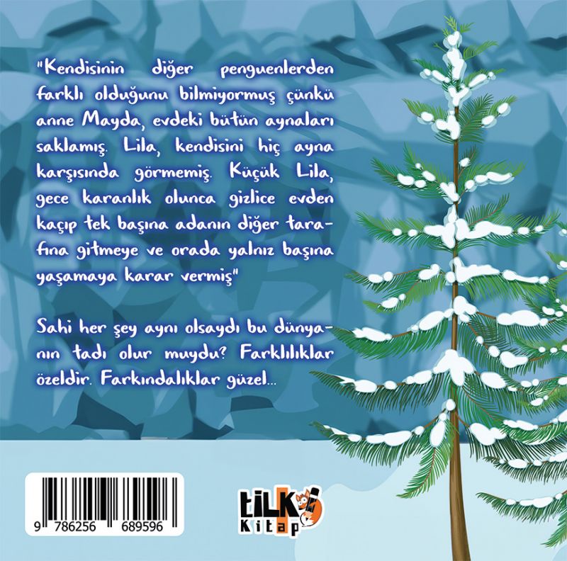 “Kendisinin diğer penguenlerden farklı olduğunu bilmiyormuş çünkü anne Mayda, evdeki bütün aynaları saklamış. Lila, kendisini hiç ayna karşısında görmemiş. Küçük Lila, gece karanlık olunca gizlice evden kaçıp tek başına adanın diğer tarafına gitmeye ve orada yalnız başına yaşamaya karar vermiş” Sahi her şey aynı olsaydı bu dünyanın tadı olur muydu? Farklılıklar özeldir. Farkındalıklar güzel...
