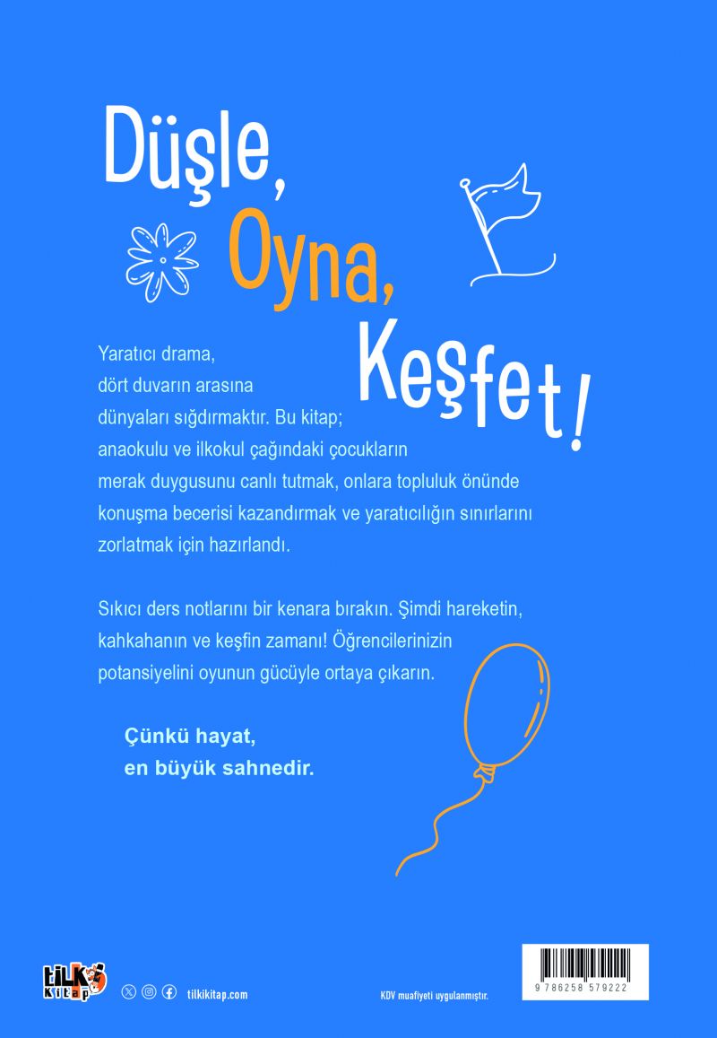 Yaratıcı drama, dört duvarın arasına dünyaları sığdırmaktır. Bu kitap; anaokulu ve ilkokul çağındaki çocukların merak duygusunu canlı tutmak, onlara topluluk önünde konuşma becerisi kazandırmak ve yaratıcılığın sınırlarını zorlatmak için hazırlandı.