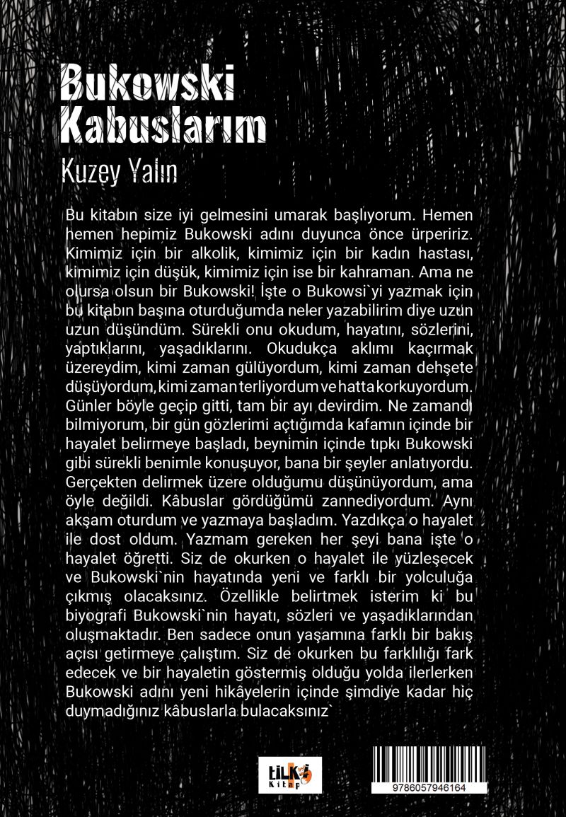 Bu kitabın size iyi gelmesini umarak başlıyorum. Hemen hemen hepimiz Bukowski adını duyunca önce ürpeririz. Kimimiz için bir alkolik, kimimiz için bir kadın hastası, kimimiz için düşük, kimimiz için ise bir kahraman. Ama ne olursa olsun bir Bukowski! İşte o Bukowsi'yi yazmak için bu kitabın başına oturduğumda neler yazabilirim diye uzun uzun düşündüm. Sürekli onu okudum, hayatını, sözlerini, yaptıklarını, yaşadıklarını. Okudukça aklımı kaçırmak üzereydim, kimi zaman gülüyordum, kimi zaman dehşete düşüyordum, kimi zaman terliyordum ve hatta korkuyordum. Günler böyle geçip gitti, tam bir ayı devirdim. Ne zamandı bilmiyorum, bir gün gözlerimi açtığımda kafamın içinde bir hayalet belirmeye başladı, beynimin içinde tıpkı Bukowski gibi sürekli benimle konuşuyor, bana bir şeyler anlatıyordu. Gerçekten delirmek üzere olduğumu düşünüyordum, ama öyle değildi. Kâbuslar gördüğümü zannediyordum. Aynı akşam oturdum ve yazmaya başladım. Yazdıkça o hayalet ile dost oldum. Yazmam gereken her şeyi bana işte o hayalet öğretti. Siz de okurken o hayalet ile yüzleşecek ve Bukowski'nin hayatında yeni ve farklı bir yolculuğa çıkmış olacaksınız. Özellikle belirtmek isterim ki bu biyografi Bukowski'nin hayatı, sözleri ve yaşadıklarından oluşmaktadır. Ben sadece onun yaşamına farklı bir bakış açısı getirmeye çalıştım. Siz de okurken bu farklılığı fark edecek ve bir hayaletin göstermiş olduğu yolda ilerlerken Bukowski adını yeni hikâyelerin içinde şimdiye kadar hiç duymadığınız kâbuslarla bulacaksınız'