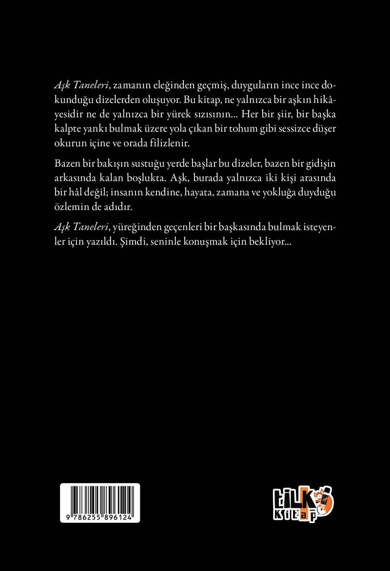 Aşk Taneleri, zamanın eleğinden geçmiş, duyguların ince ince dokunduğu dizelerden oluşuyor. Bu kitap, ne yalnızca bir aşkın hikâyesidir ne de yalnızca bir yürek sızısının... Her bir şiir, bir başka kalpte yankı bulmak üzere yola çıkan bir tohum gibi sessizce düşer okurun içine ve orada filizlenir.