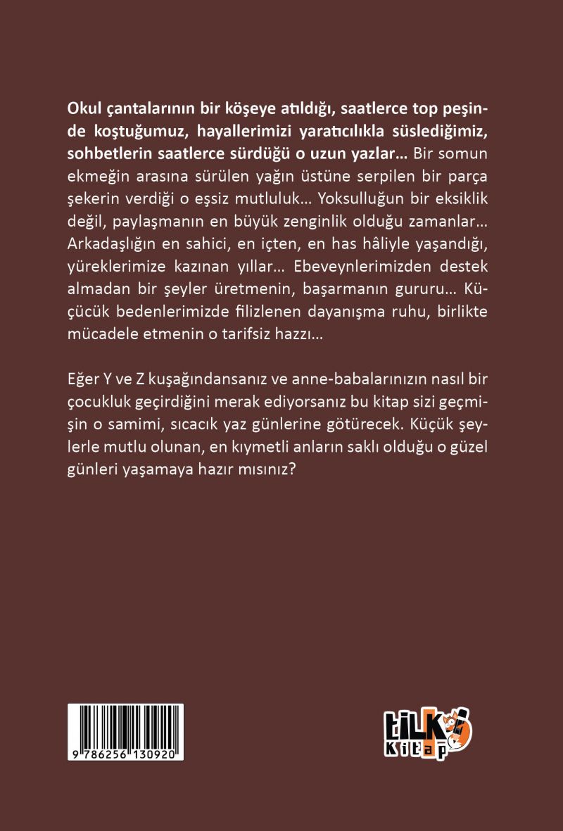 Eğer Y ve Z kuşağındansanız ve anne-babalarınızın nasıl bir çocukluk geçirdiğini merak ediyorsanız bu kitap sizi geçmişin o samimi, sıcacık yaz günlerine götürecek. Küçük şeylerle mutlu olunan, en kıymetli anların saklı olduğu o güzel günleri yaşamaya hazır mısınız?