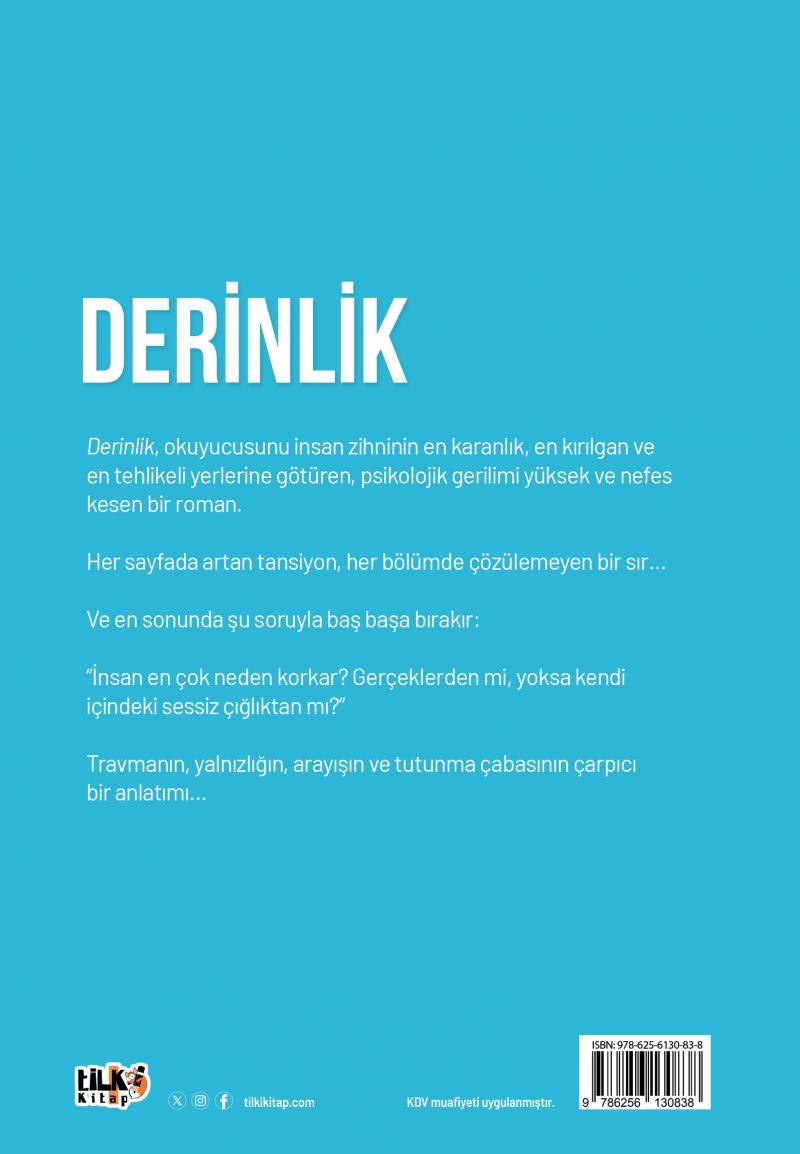 Derinlik, okuyucusunu insan zihninin en karanlık, en kırılgan ve en tehlikeli yerlerine götüren, psikolojik gerilimi yüksek ve nefes kesen bir roman.