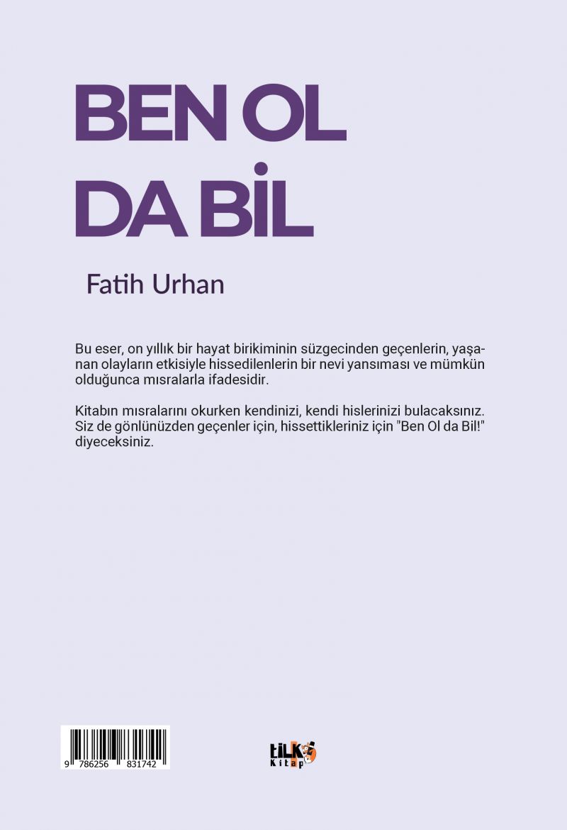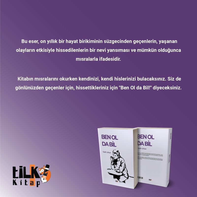 Kitabın mısralarını okurken kendinizi, kendi hislerinizi bulacaksınız. Siz de gönlünüzden geçenler için, hissettikleriniz için "Ben Ol da Bil!" diyeceksiniz.