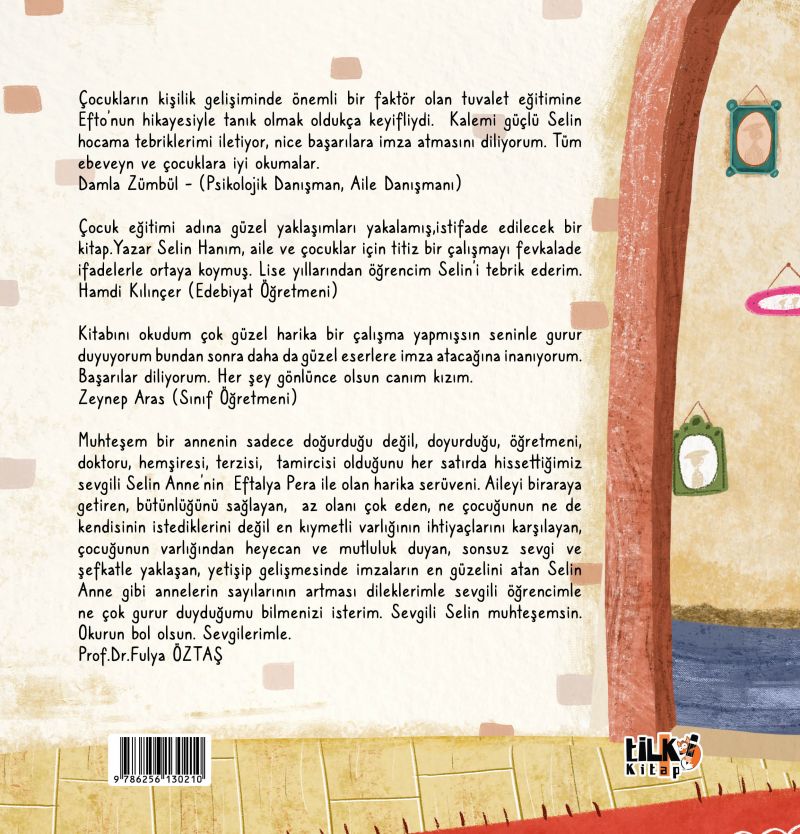 Çocukların kişilik gelişiminde önemli bir faktör olan tuvalet eğitimine Efto'nun hikayesiyle tanık olmak oldukça keyifliydi. Kalemi güçlü Selin hocama tebriklerimi iletiyor, nice başarılara imza atmasını diliyorum. Tüm ebeveyn ve çocuklara iyi okumalar.