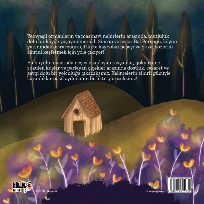 Bu büyülü macerada neşeyle zıplayan tavşanlar, gökyüzüne süzülen kuşlar ve parlayan çiçekler arasında dostluk, cesaret ve sevgi dolu bir yolculuğa çıkacaksınız. Kelimelerin sihirli gücüyle karanlıklar nasıl aydınlanır, birlikte göreceksiniz!